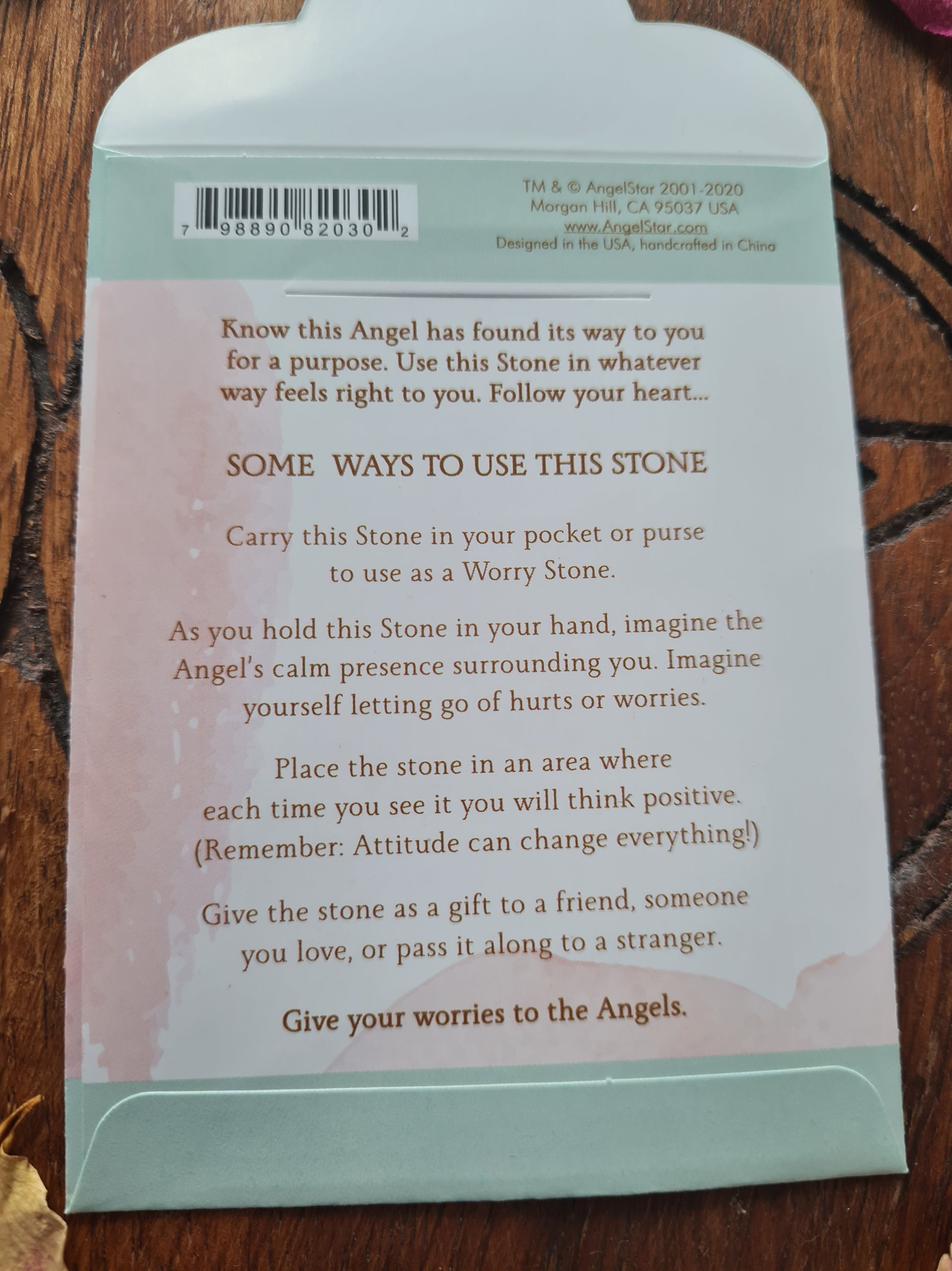 As you hold this stone in your hand, imagine the Angel's calm presence surrounding you. Imagine yourself letting go of hurts or worries.
