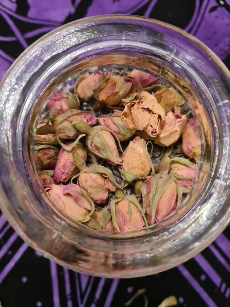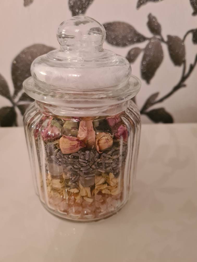 The jar measures 12.5 x 7.5 cm This item was made on a Friday and charged during a waxing moon to help connect with Venus' energy. The jar was cleansed with heart chakra incense.