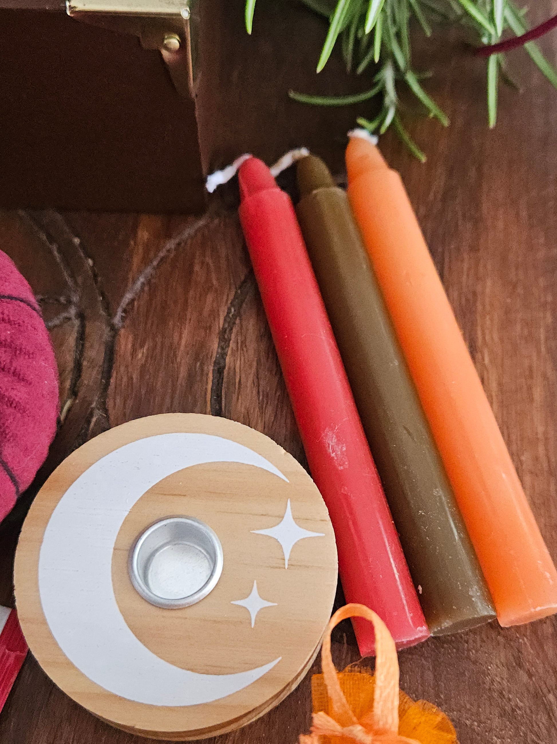 3 Spell Candles - 1 Brown, 1 Red, 1 Orange