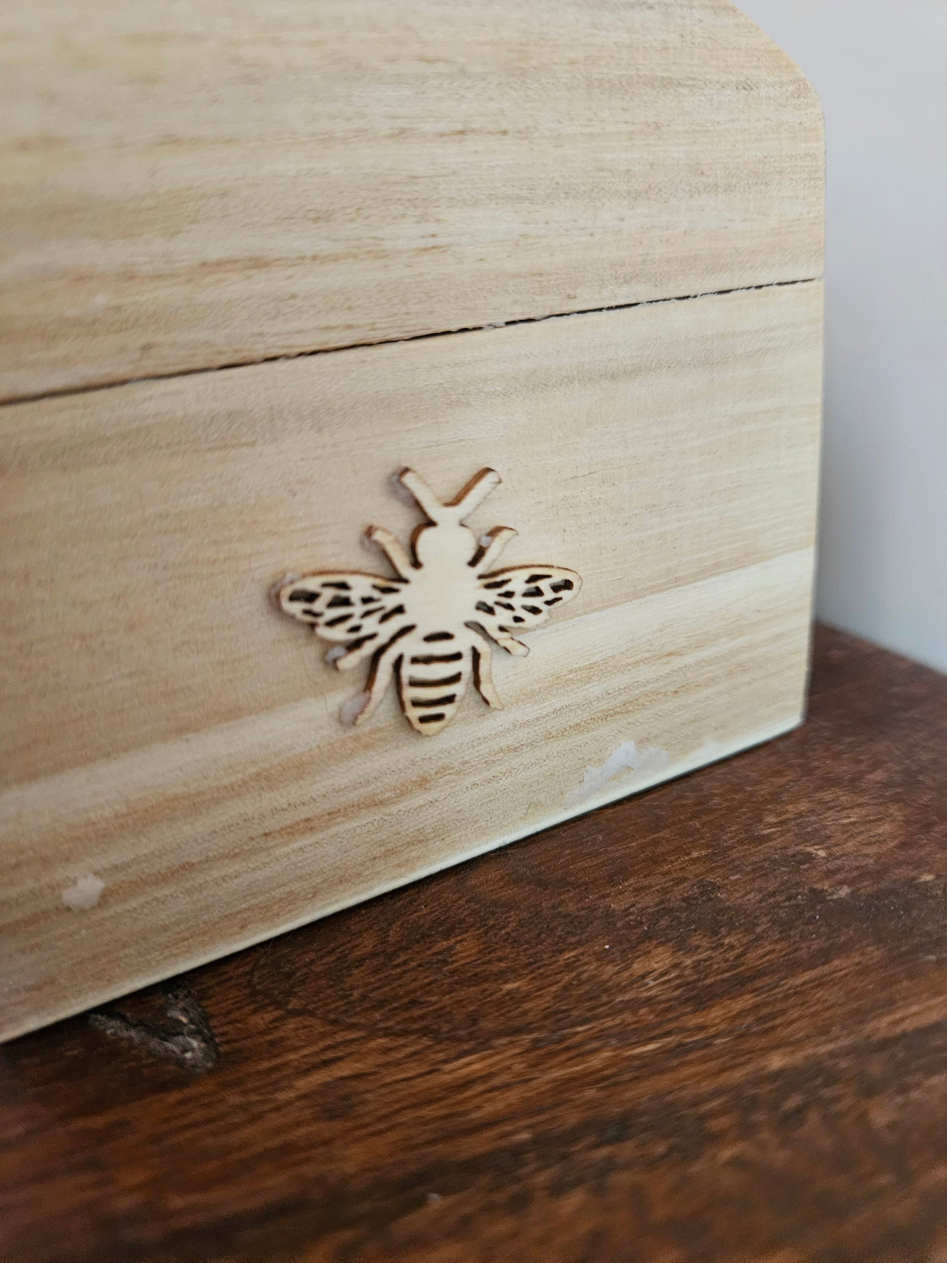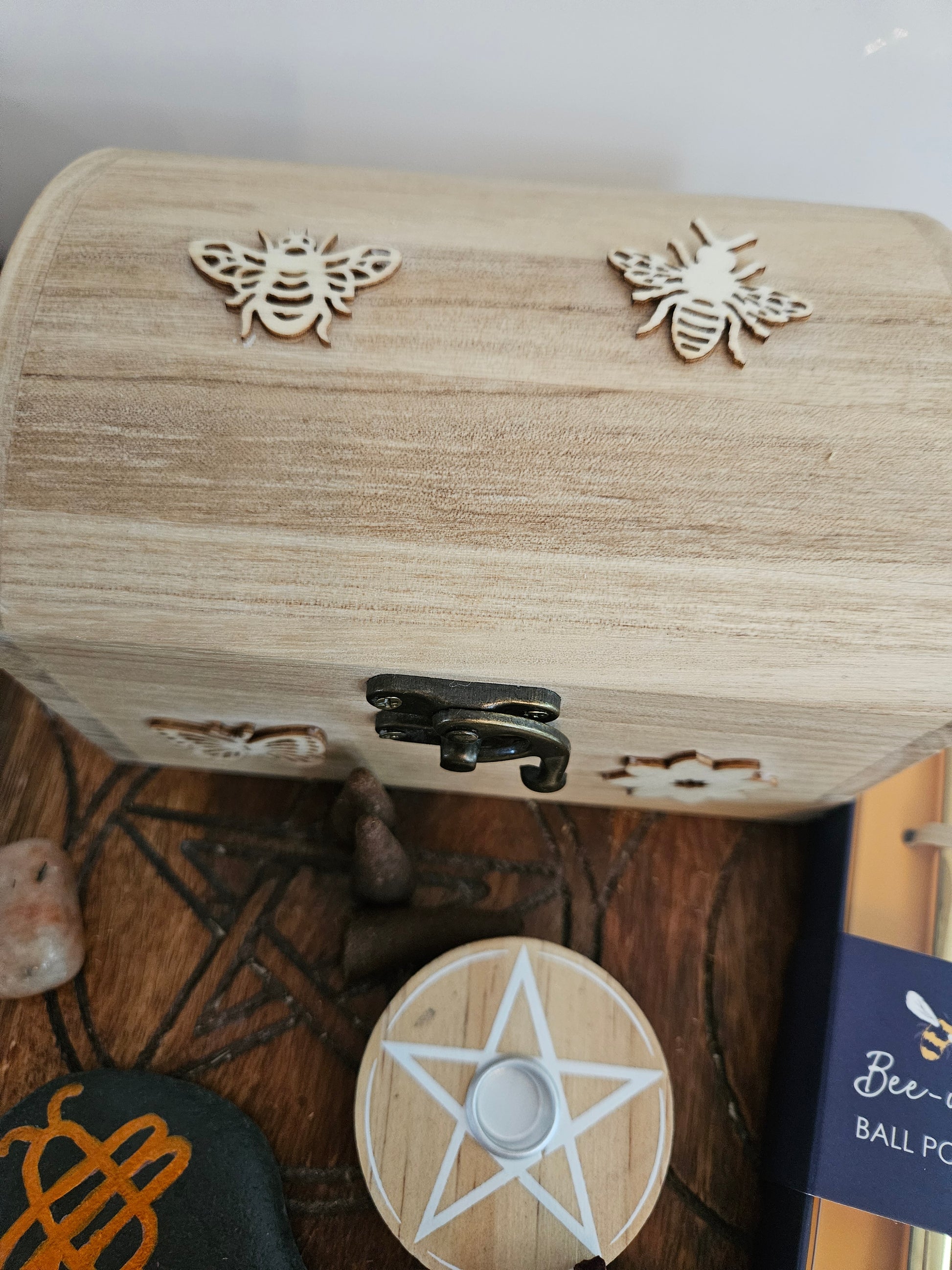 1 x Wooden Altar Box decorated with wooden bees and polished using a homemade beeswax