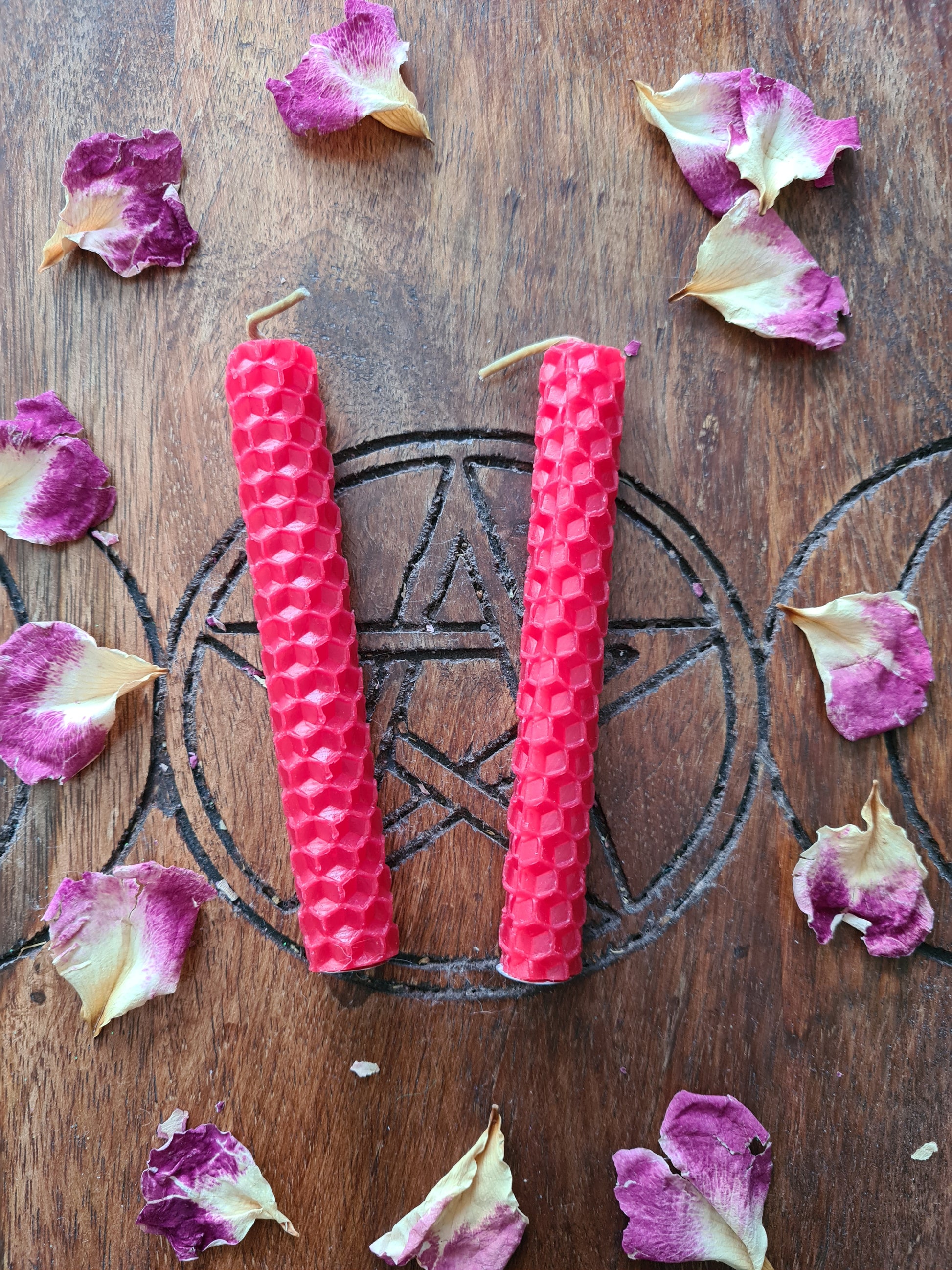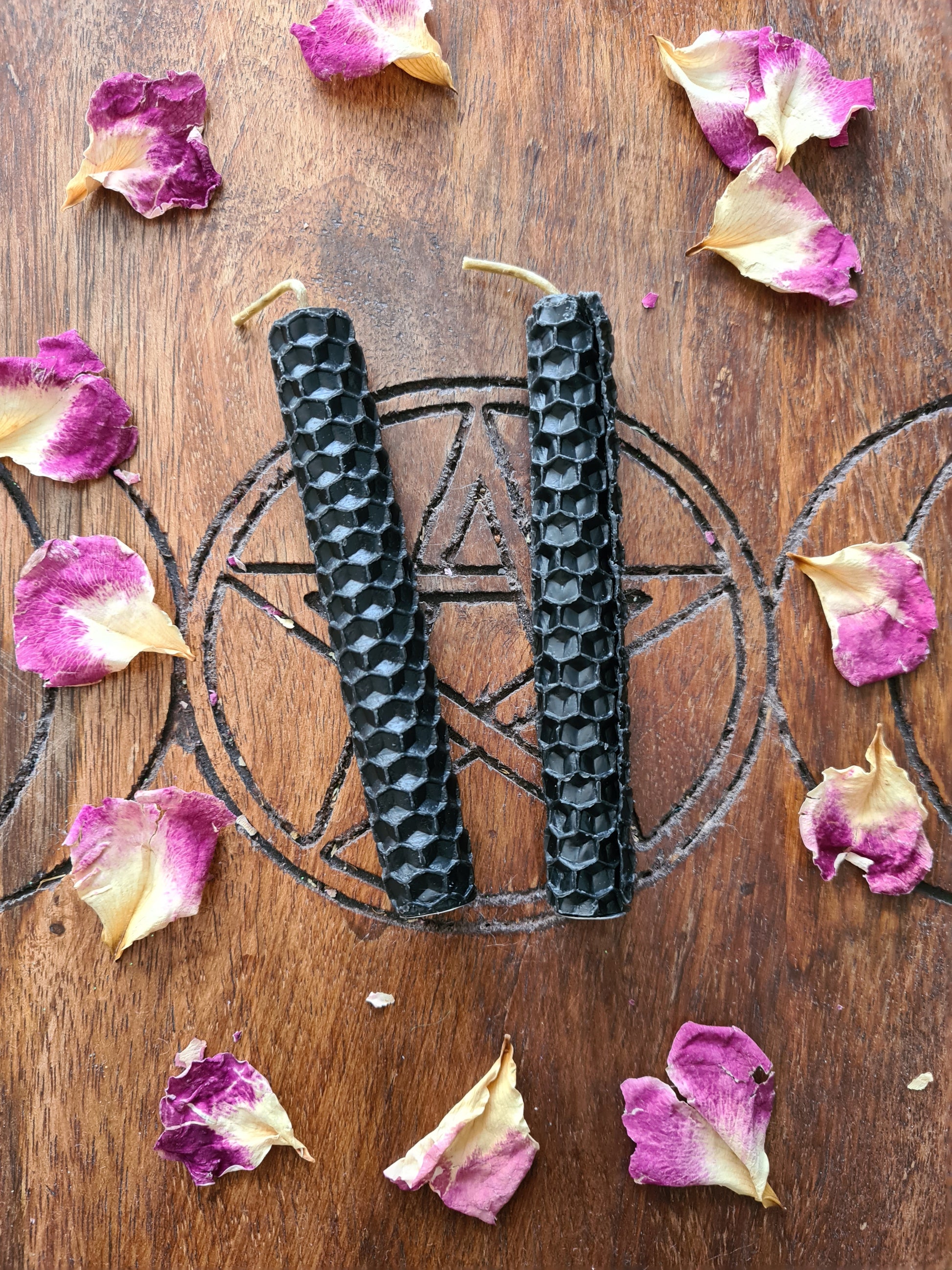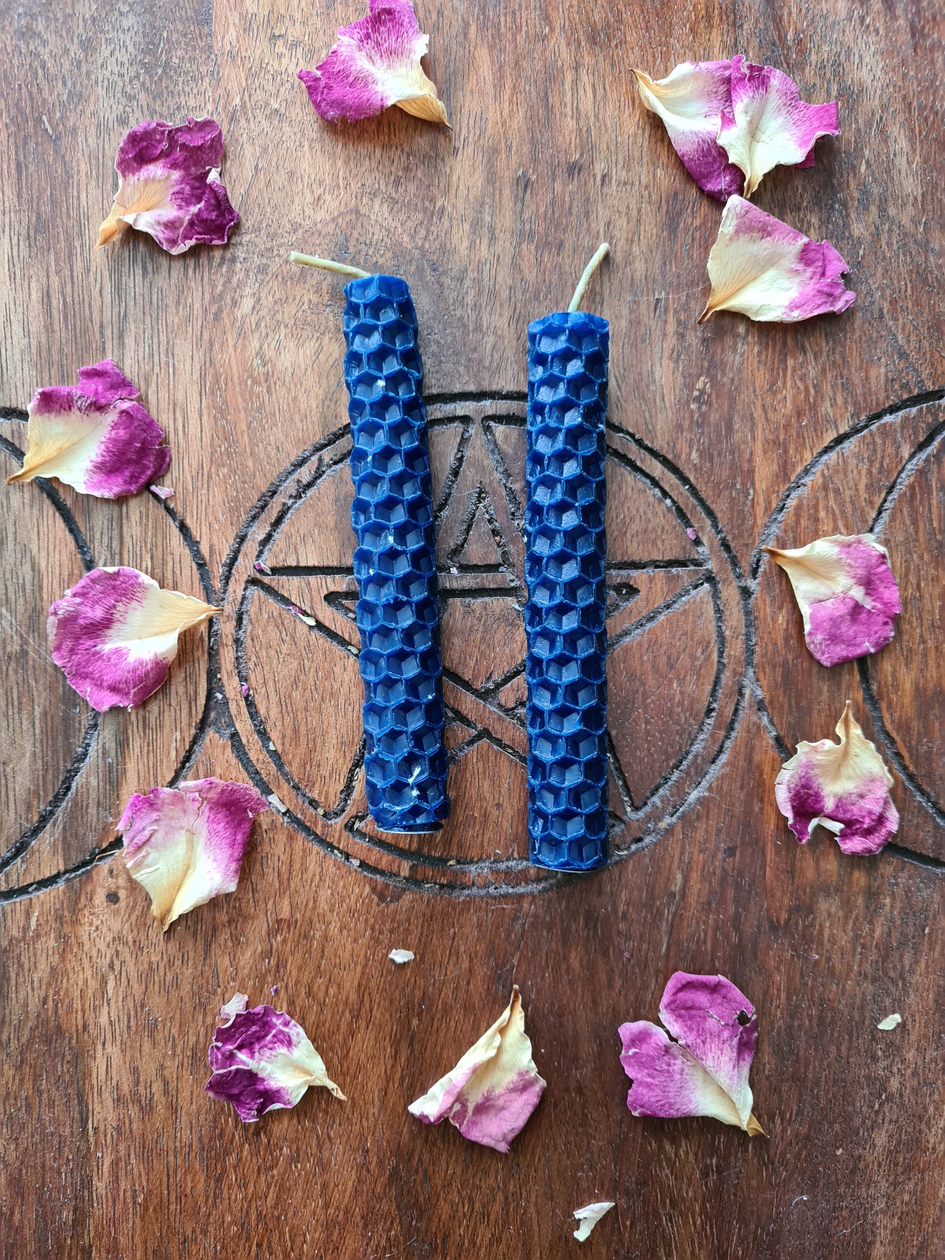 These beautiful Blessed Bee beeswax candles are perfect for spellwork. Light, natural scent. Approximate burn time of 1 hour. 100% linen wick. Non-toxic. Do not ingest. Due to the hand rolling process, candle diameter will vary and may not fit all holder types. Colour may vary slightly between production batches. Measure approx 10cmx1.5cm