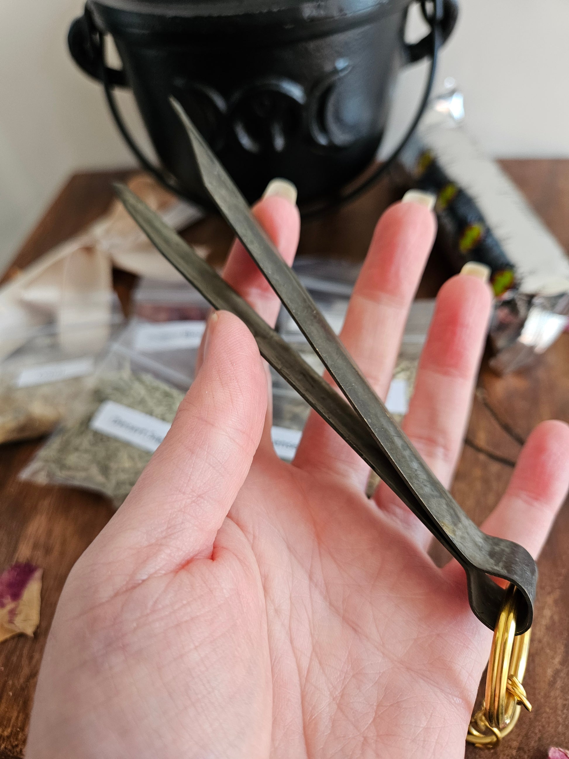 The Brass Tongs can be used as a safe method for either holding your charcoal tablets as you light them or for placing resins on your charcoal disk once alight in a burner.