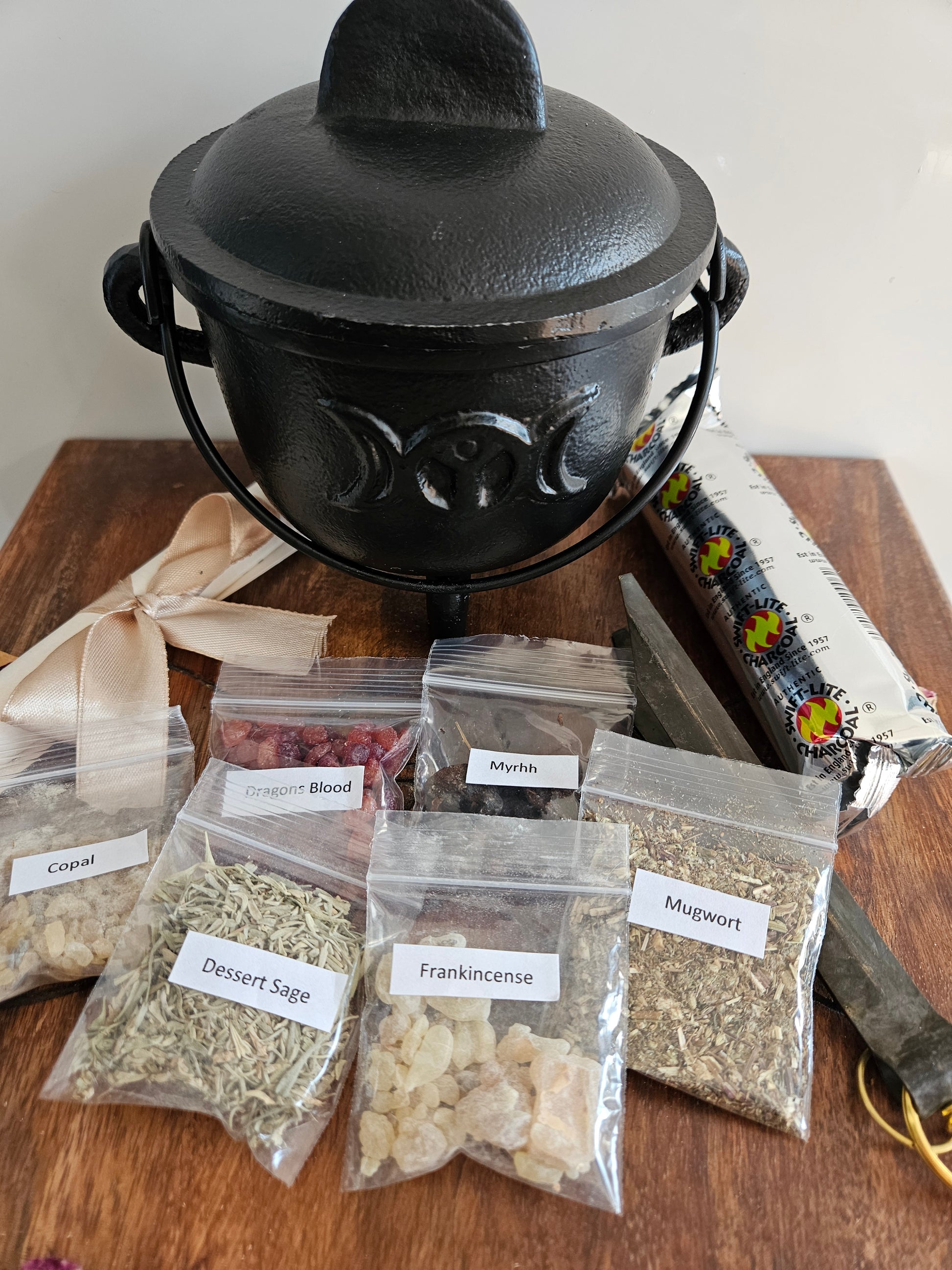This wonderful bundle contains everything you need to get started with your cauldron. In your choice of Pentagram or Triple Moon cauldron.