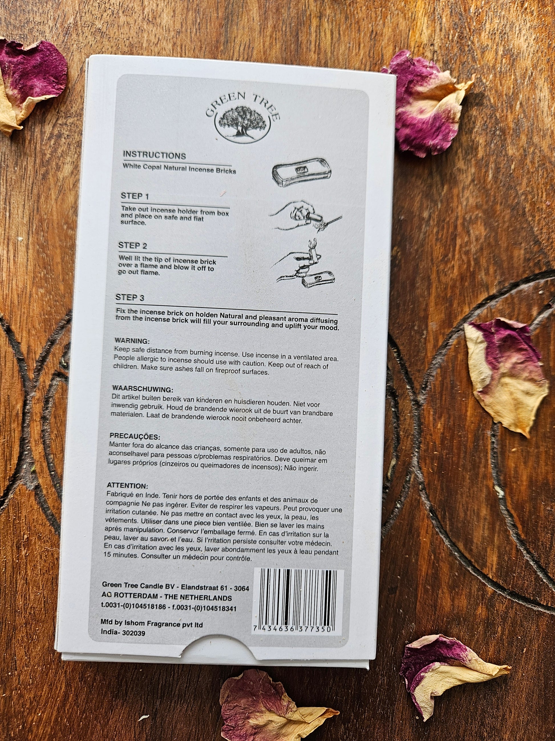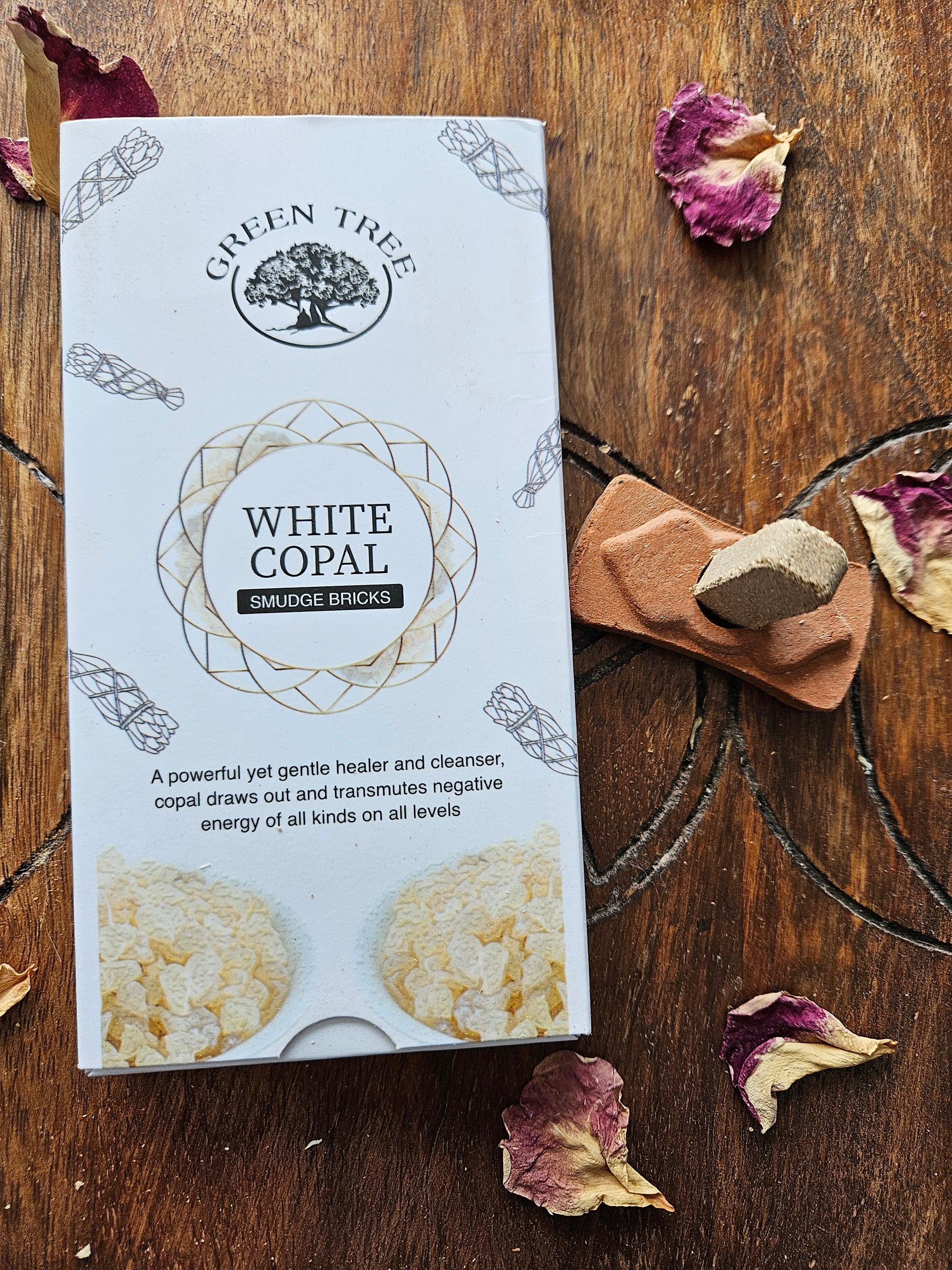 This Green Tree White Copal Smudge Bricks set includes 15 incense bricks and a terracotta holder for easy burning. Made from copal resin, it is designed for drawing out negative energies. Ideal for use in homes, offices, or meditation spaces.
