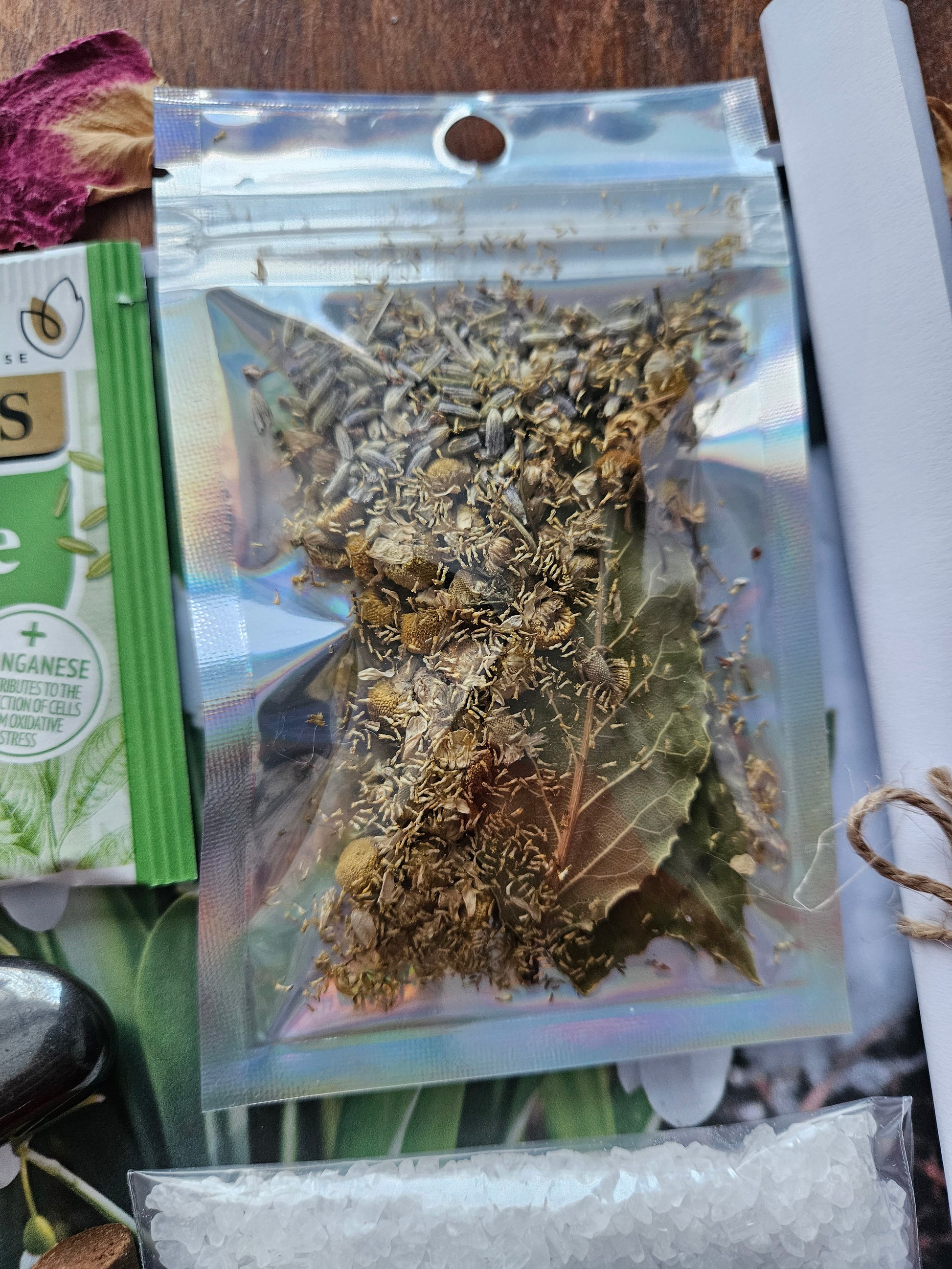 1 Sealed pouch containing 3 Bay leaves, Lavender and Chamomile