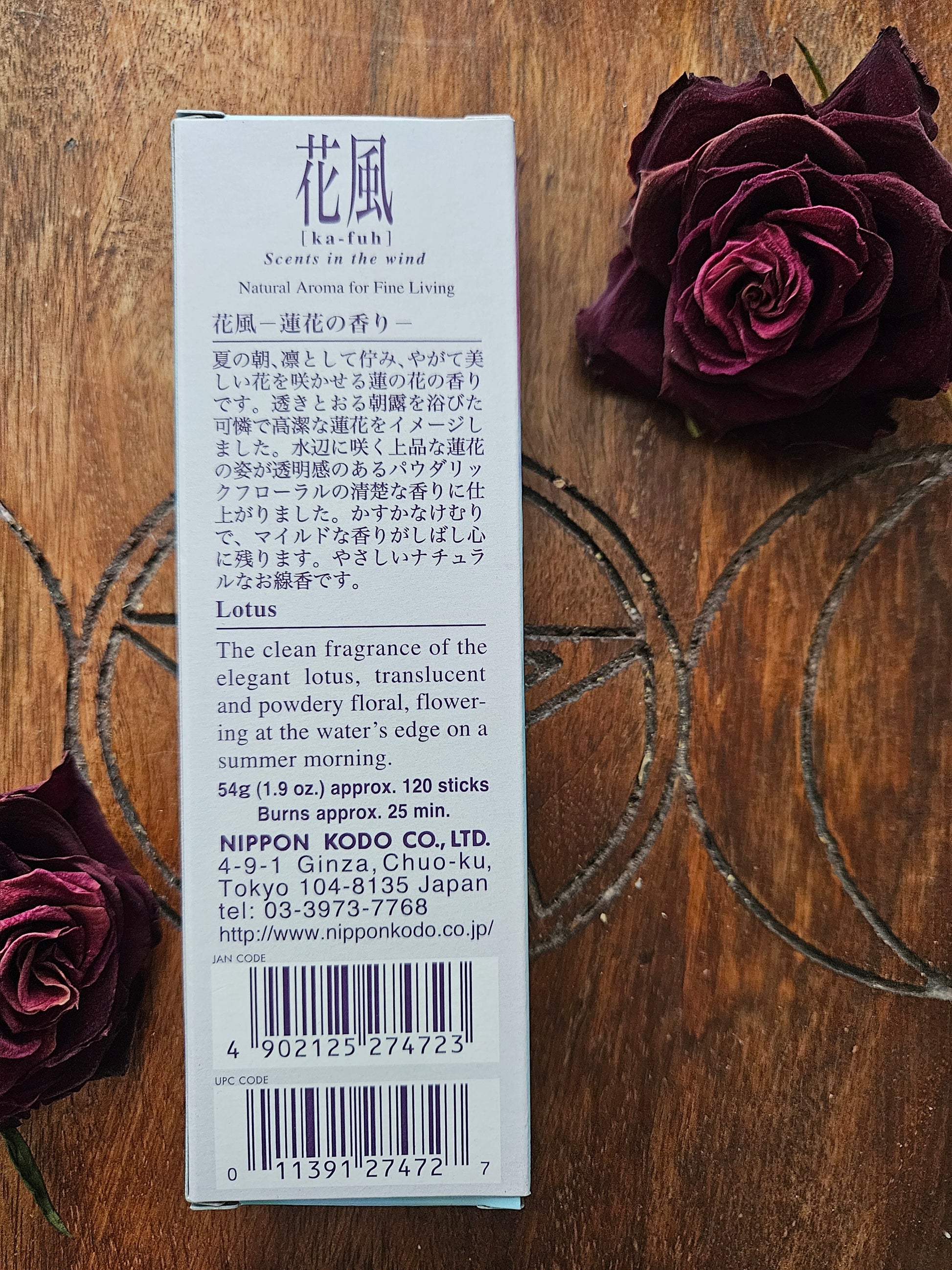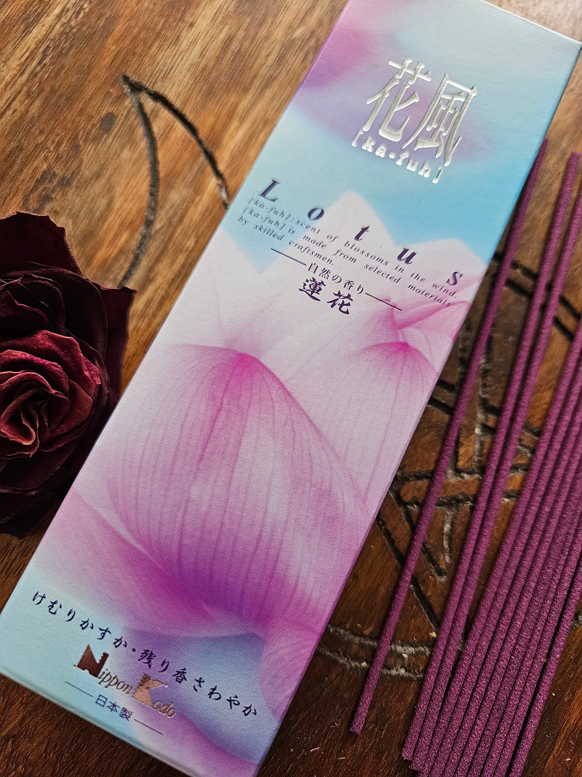 Ka-Fuh Lotus is a clean, clear and floral scented Japanese incense made by Nippon Kodo.