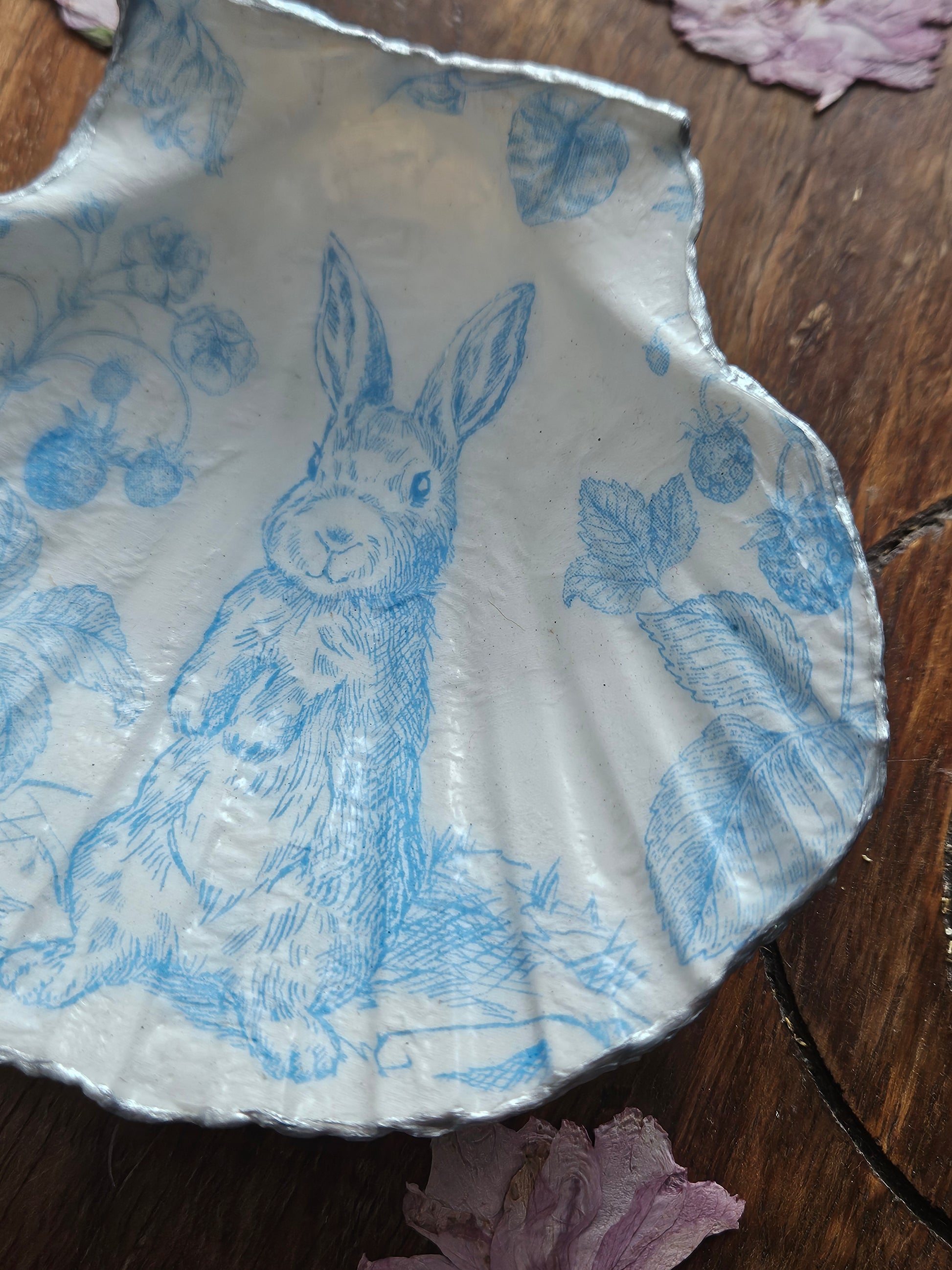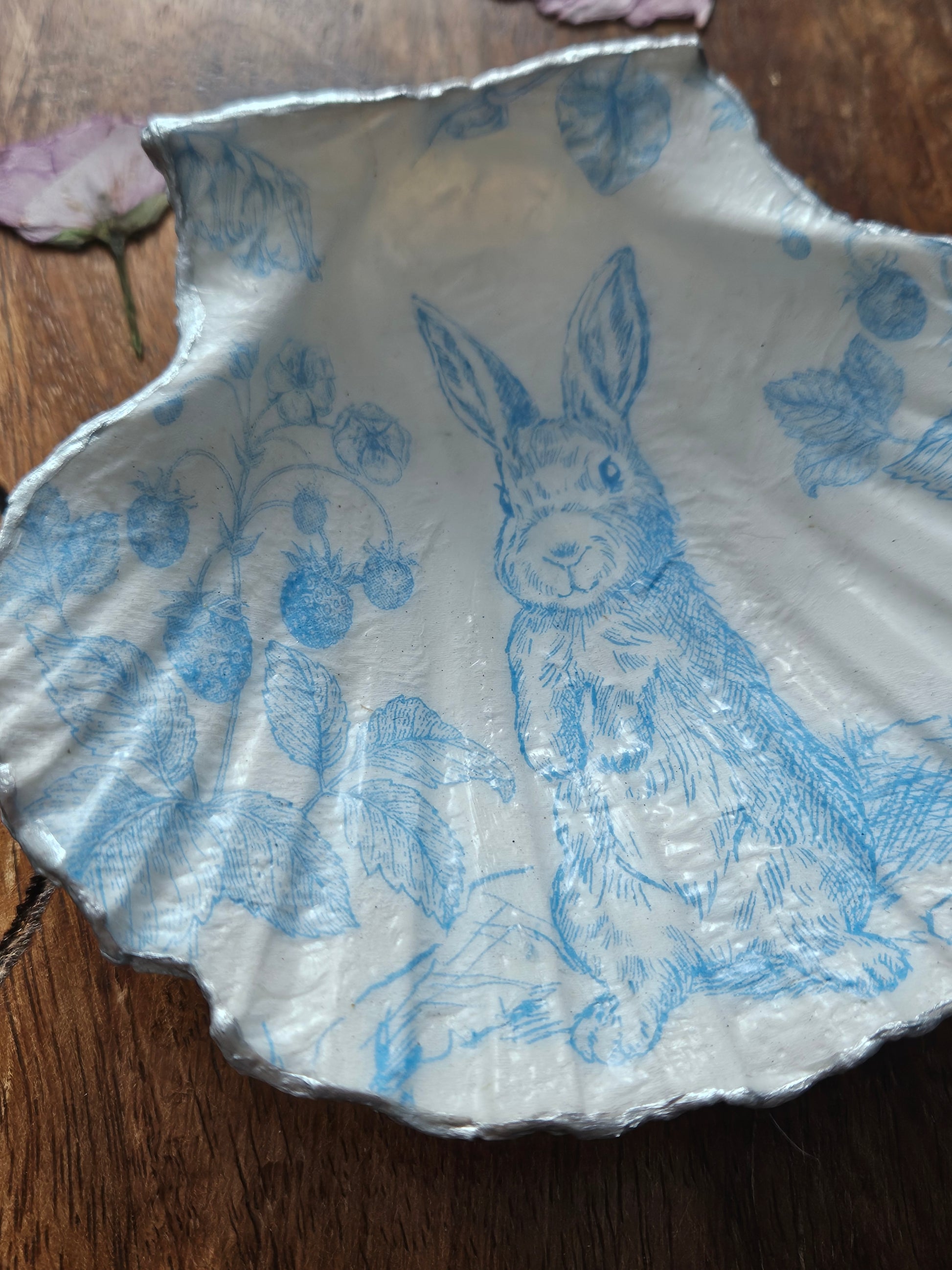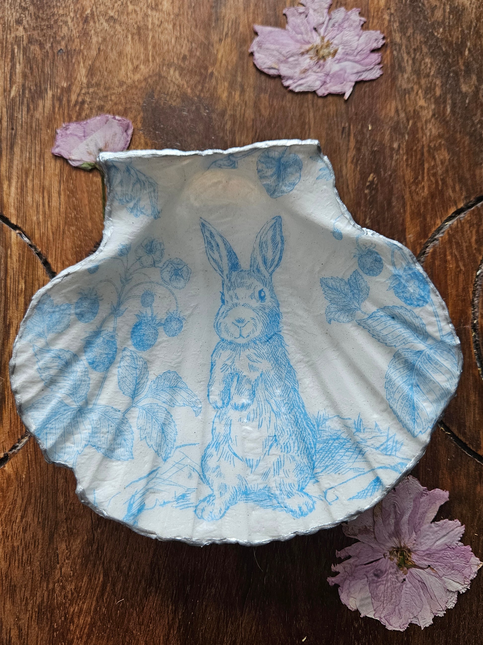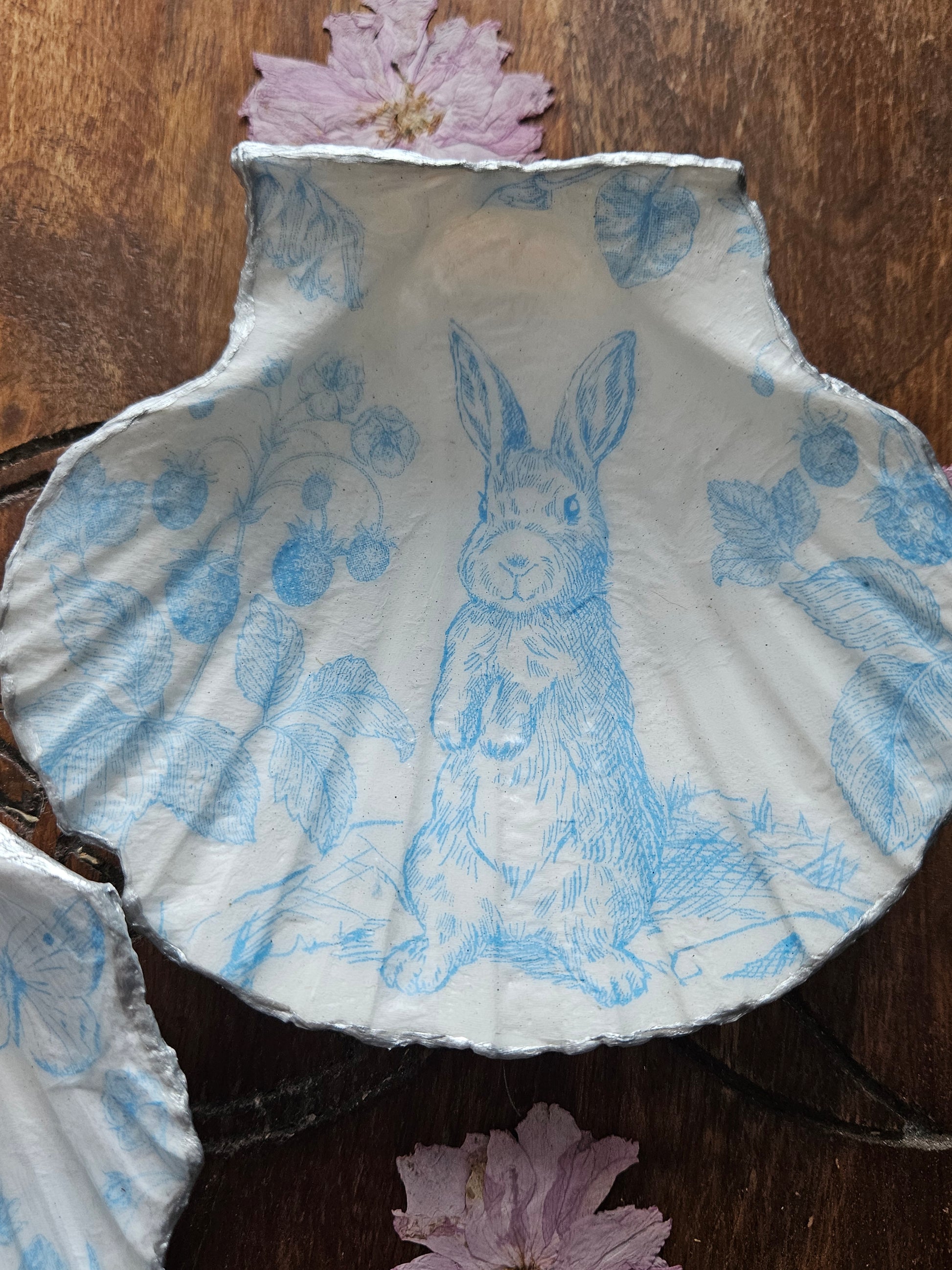 Large Scallop Shells with Decoupage Design - Rabbit or Floral Butterfly