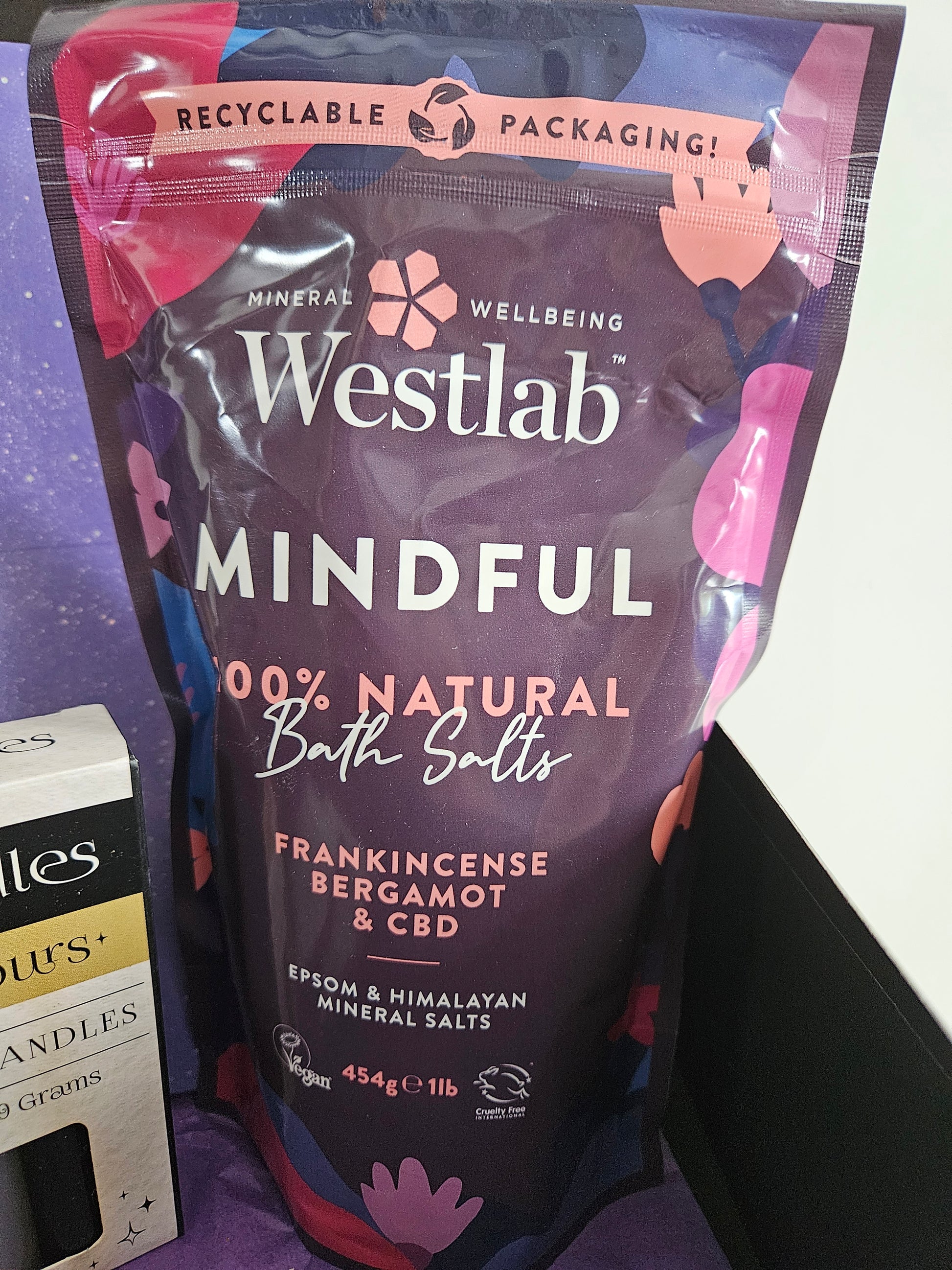 1x Westlab Mindful Bath Salts - A fragrant, mineral-infused bath to help encourage deep relaxation. 100% natural, Vegan blend of magnesium-rich Epsom and Himalayan Salts infused with CBD, Frankincense and Bergamot essential oils.