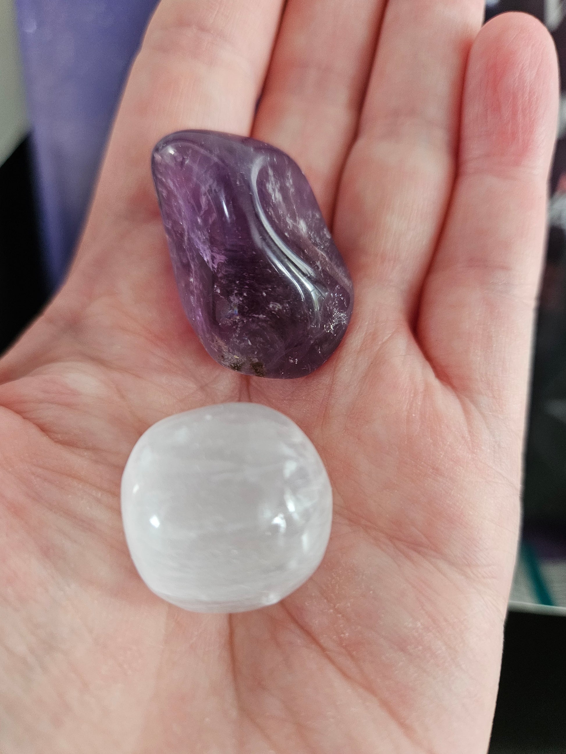 1x Amethyst tublestone. Known for its strong connection to spirituality and its ability to provide clarity and insight. It is associated with both the Third Eye and Crown chakras, promoting spiritual growth, intuition, and higher consciousness.