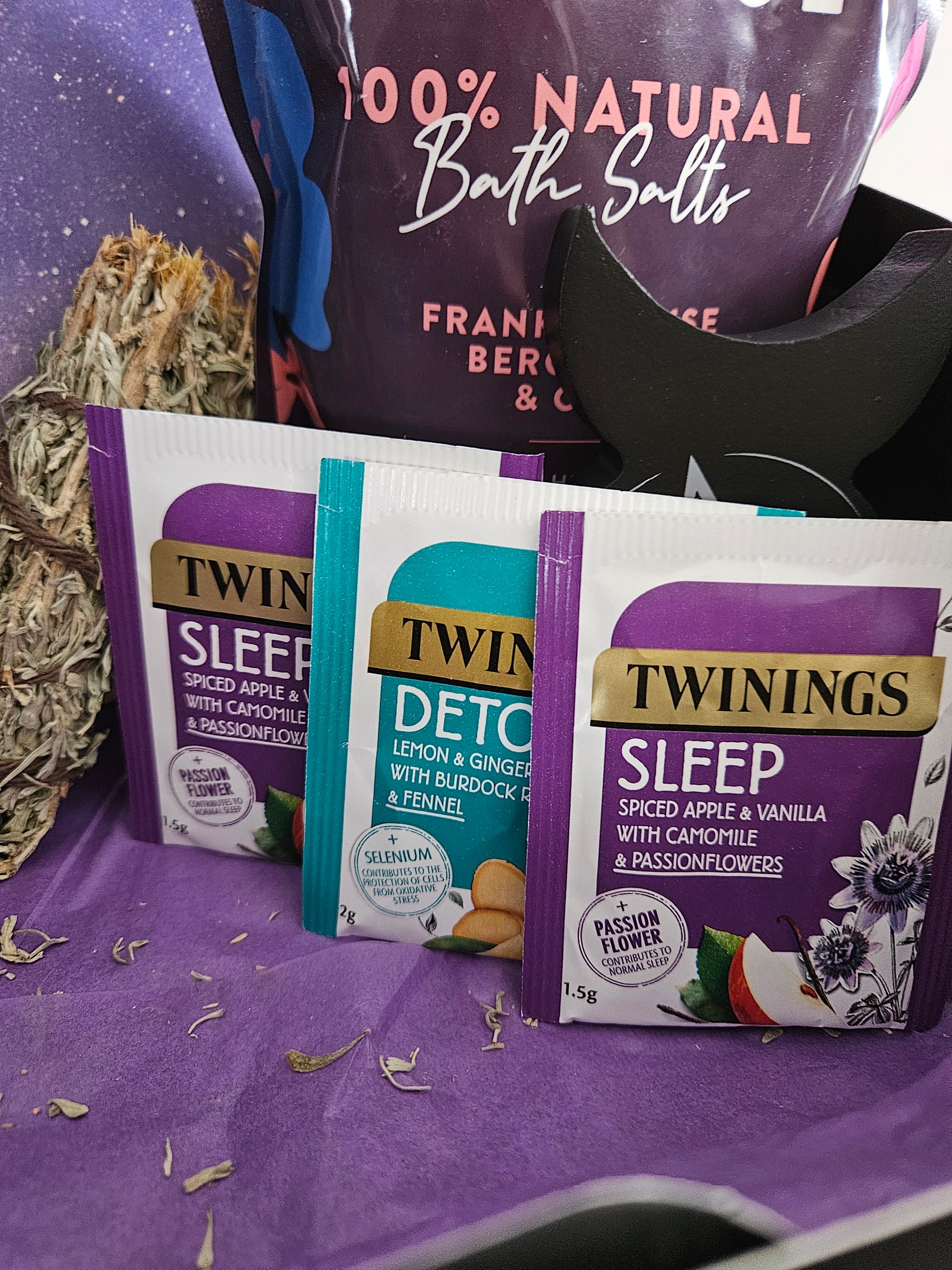 2x Twinings Sleep Teabags, to help settle you during the Full Moon. Spiced Apple and Vanilla Flavoured Herbal Infusion with Camomile and Passionflower.