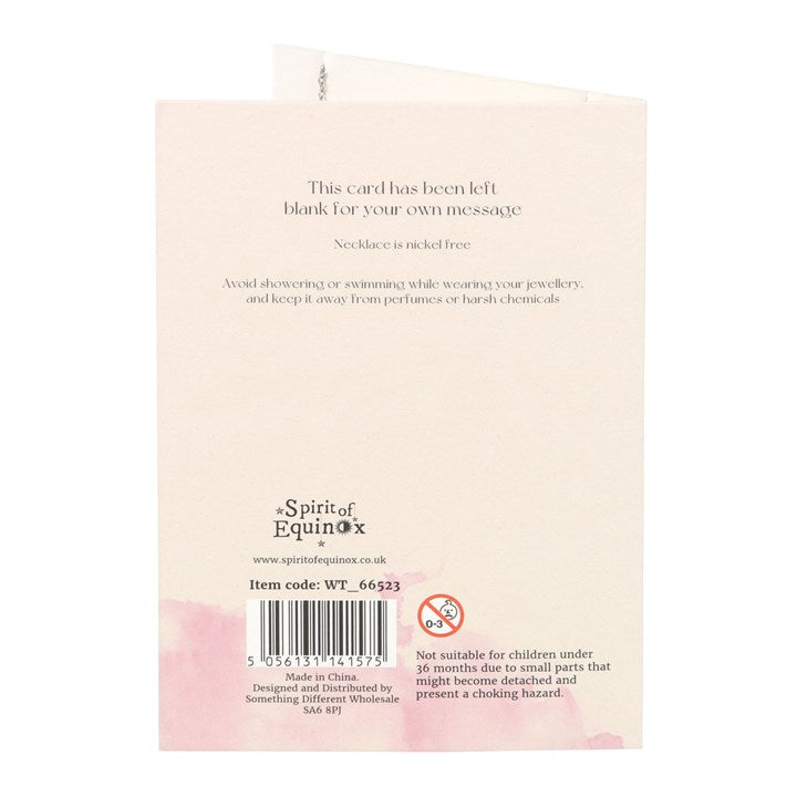 This inspiring 'You Are Magic' greeting card features a silver-tone crescent moon necklace accented by an opalite stone. Opalite is a manmade stone reminiscent of opal and moonstone, used to promote courage and remove energy blockages. 22cm chain with lobster clasp closure. Nickel-free stainless steel. Includes envelope. Card left blank inside.