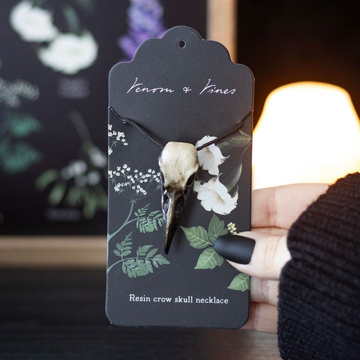 Channel your inner mystery with this striking resin crow skull necklace, suspended on a durable PU cord. Perfect for adding a touch of gothic flair to any outfit, it s a distinctive accessory for lovers of unique jewellery.