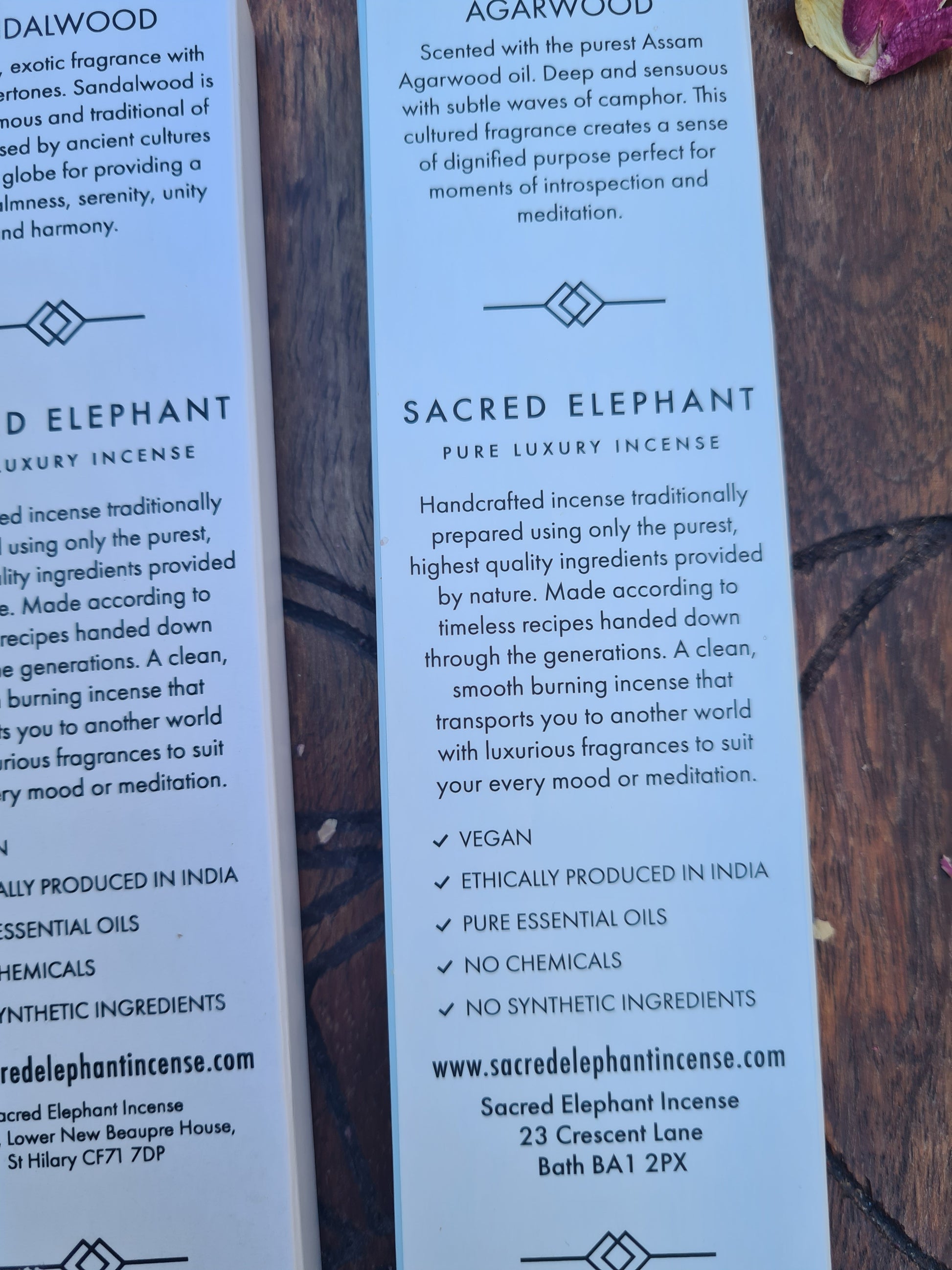 Sacred Elephant incense..the only thing I can describe is this is well worth getting...first, it's vegan..that's a plus for me..second, it's ethically produced in the country of origin...and because I am actually allergic to chemical sprays, this incense is very excellent because there are no chemicals...with that said, the incense leaves a lovely aroma in the air...the packaging may be just a white box...but, compared with other incense...this is one you can use for possibly special occasions oe to just burn alone or combined with another incense of similar sort...I prefer incense and I buy a lot of incense...it's like aroma therapy to relax or even just when doing any meditation...(if that's what you do)....this is well worth getting..(incense for just meditation in my opinion....)