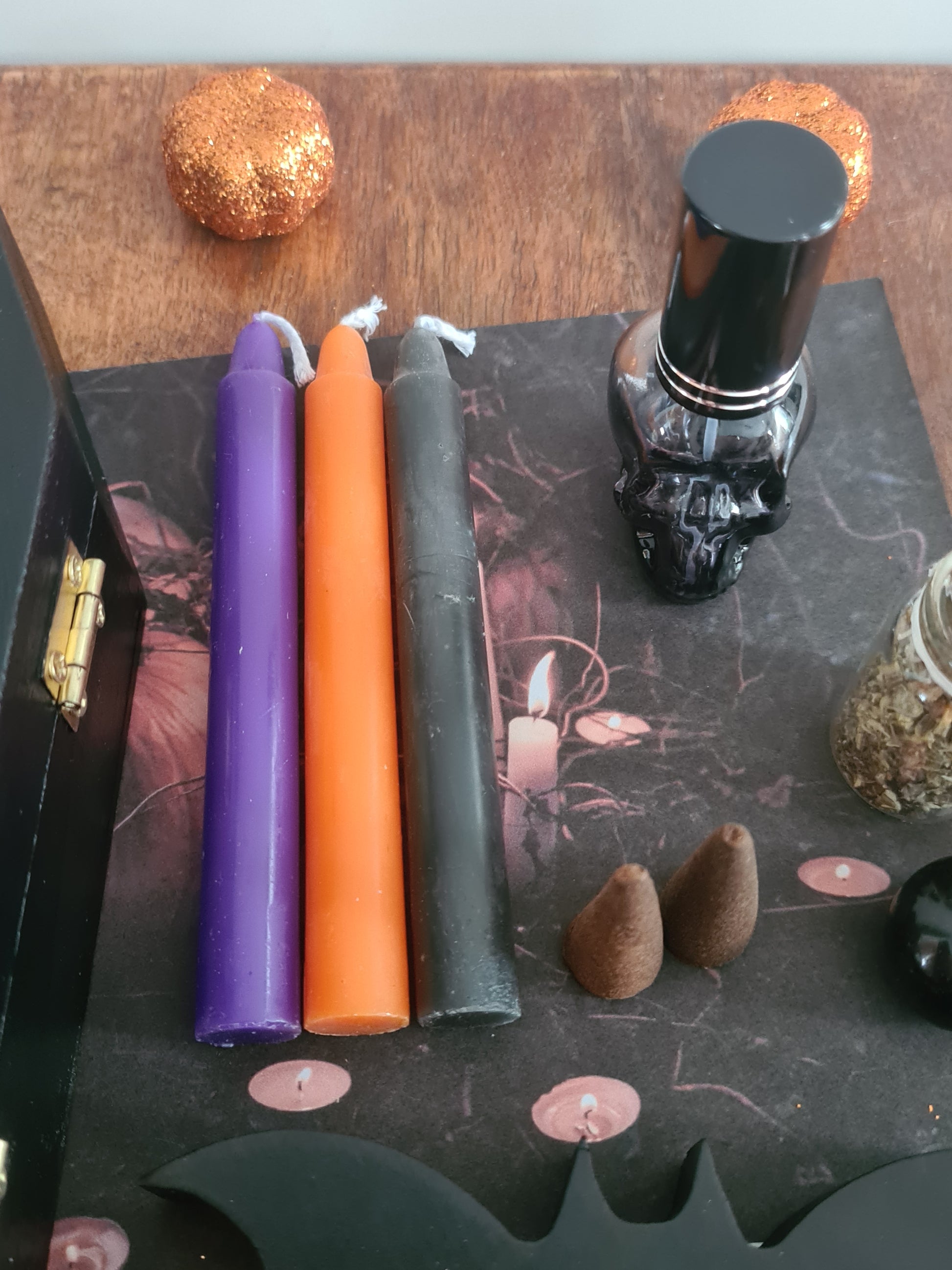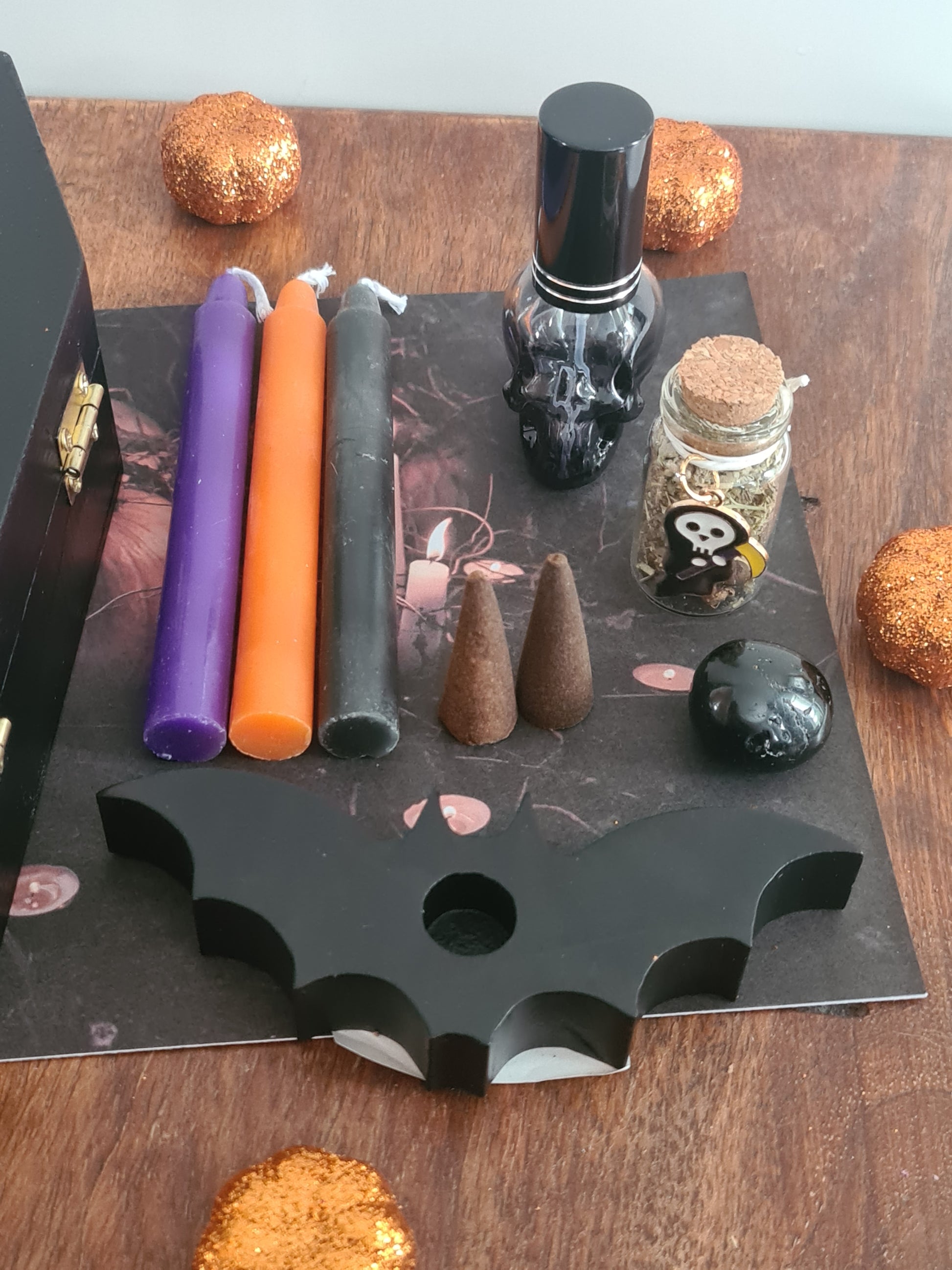 This fun coffin altar box set contains all you need to celebrate Samhain/Halloween