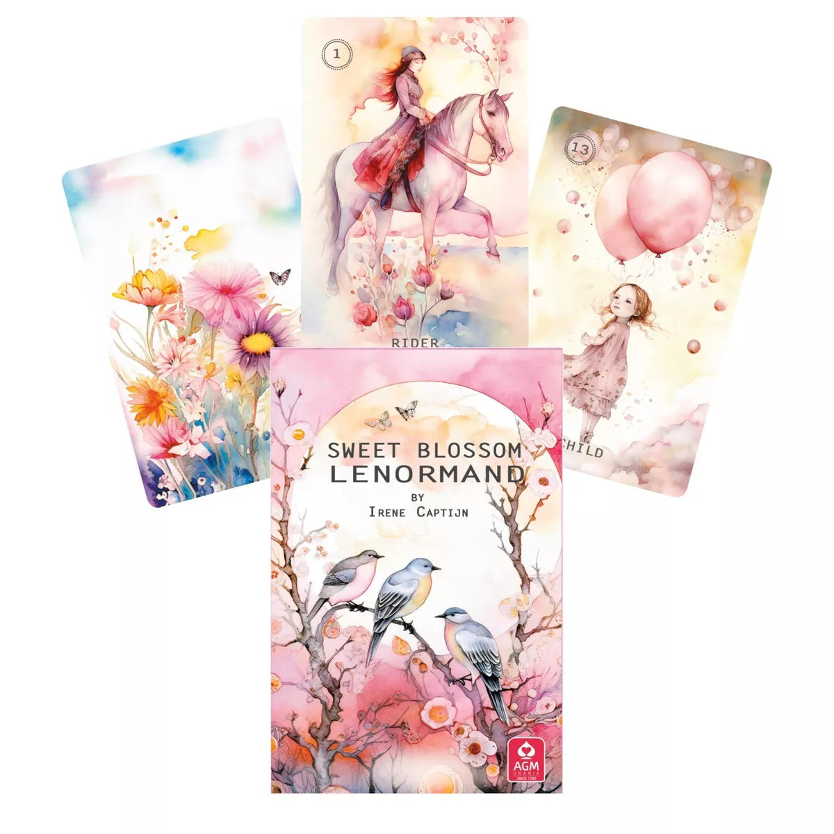 The Sweet Blossom Lenormand by Dutch artist Irene Captijn captivates with its delicate, spring-inspired colours and floral motifs, embodying hope and optimism. This 36-card deck, including 2 extra cards for same-sex readings, offers a gentle approach to daily challenges. Accompanied by a detailed 38-page booklet, it provides insights into the history and interpretation methods of Lenormand cards.